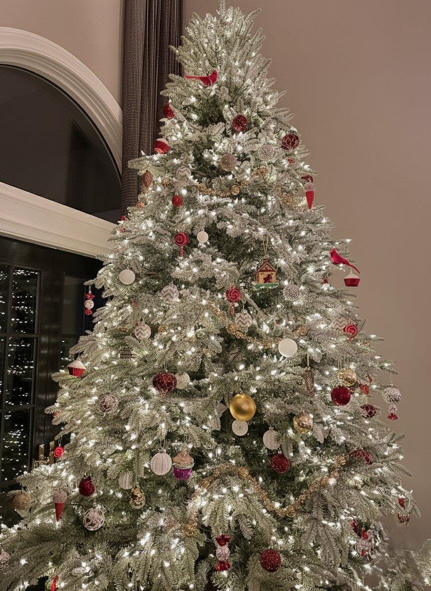 I found this tree from an ad while scrolling, and it looked so pretty I had to try it. Itโs even better in person full, snowy, and absolutely stunning in my living room!
